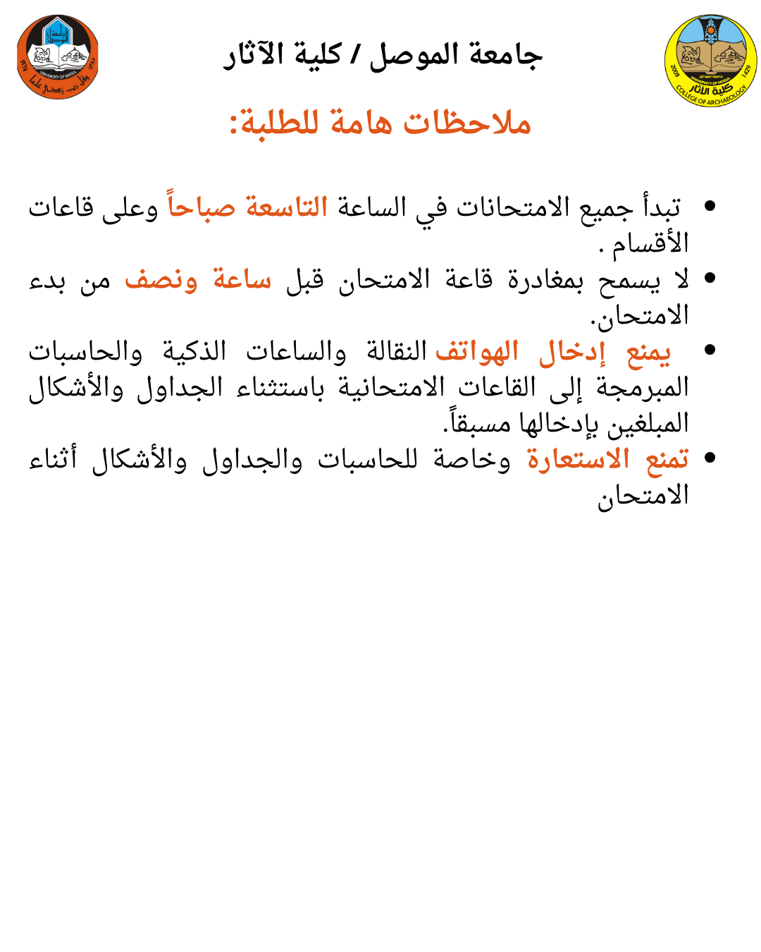 مناقشة رسالة ماجستير في الآثار القديمة / كلية الآثار / جامعة الموصل