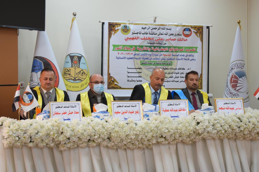 مناقشة طالب الماجستير ( مالك صابر علي مخلف) عن رسالته الموسومة تحديد اهم المواقع الجغرافية والاثرية في بلاد اشور