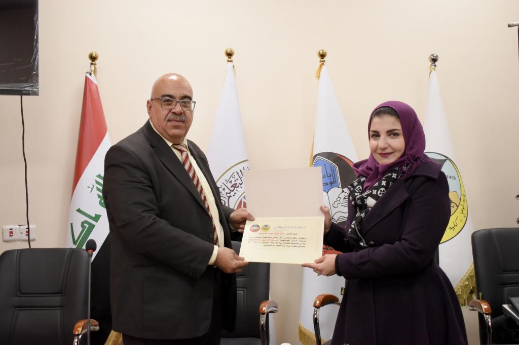 وبحضور السيدة عميد الكلية ورؤساء الاقسام العلمية وعدد من الاساتذة تم فتح باب النقاش مع الحضور.