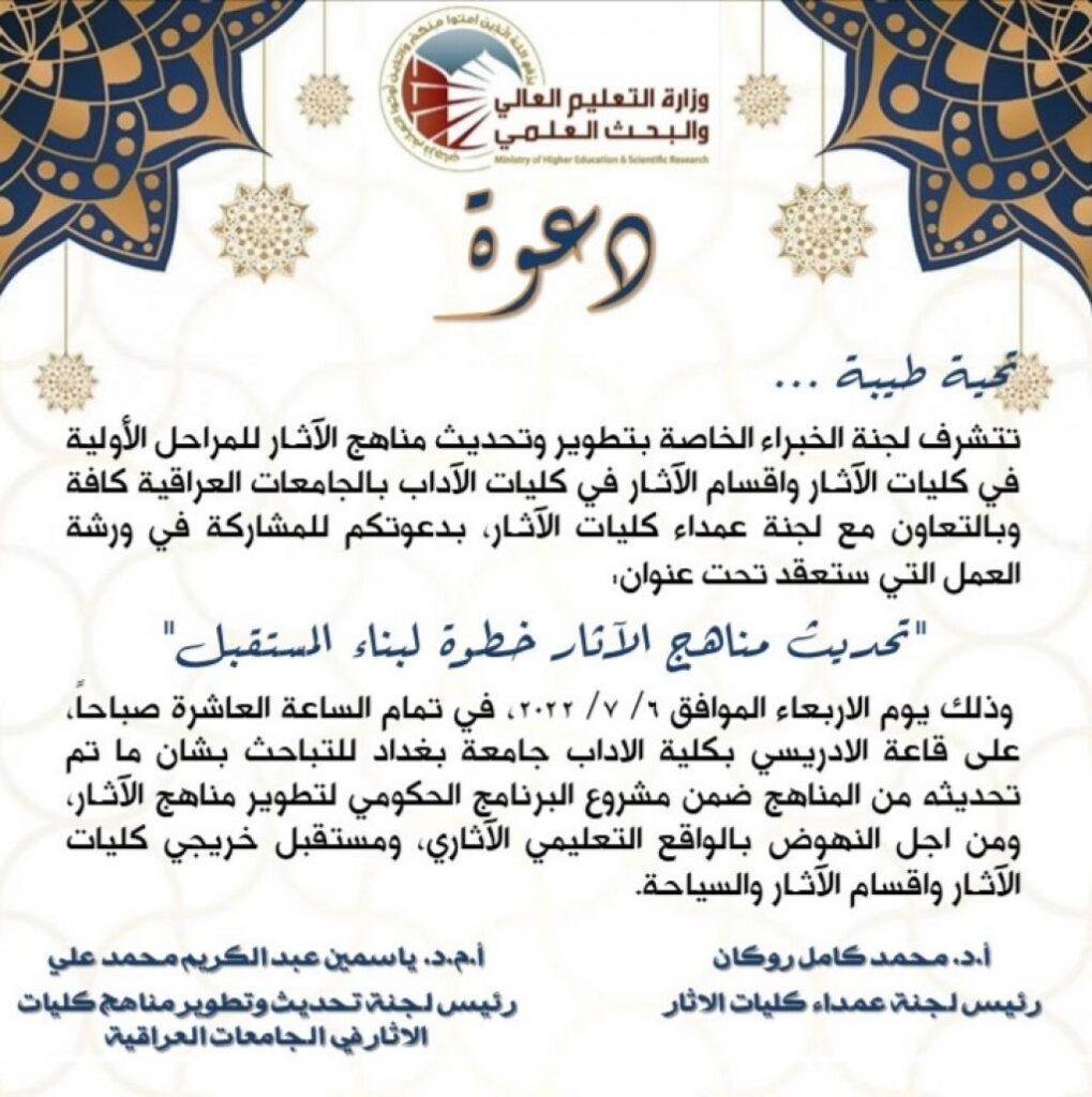 ستجري بعون الله تعالى مناقشة رسالة الماجستير الموسومة (الصيغ العامة لمضامين النصوص الملكية الآشورية الحديثة (911-612ق م ) )للطالب بارق ليث أحمد من قسم اللغات العراقية القديمةفي تمام الساعة التاسعة صباحاً من يوم الخميس الموافق 2022/6/30على قاعة أبي تمام في كلية التربية للعلوم الإنسانية