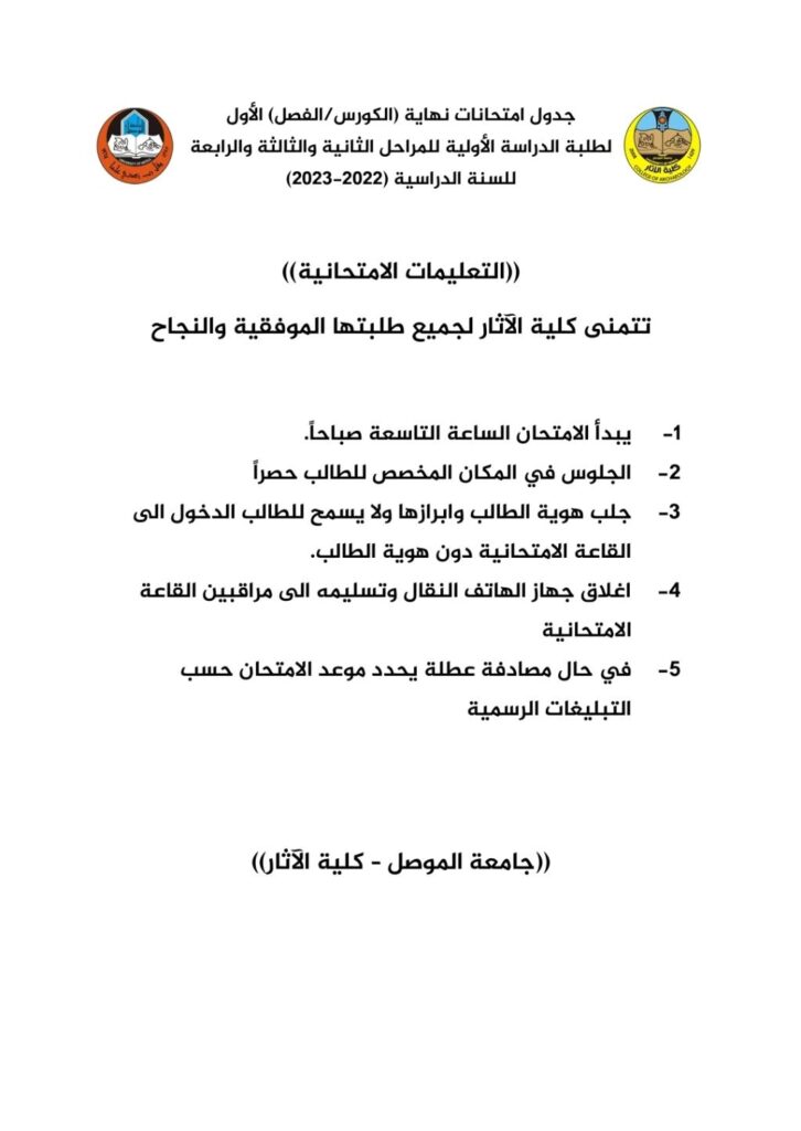 تقيم كلية الآثار / وحدة التعليم المستمر ورشة العمل الموسومة(التقييم الإلكتروني للبحوث في مجلة آثار الرافدين)يلقيها م.م. ثائر سلطان درويشيوم الأثنين الموافق 2023/1/16 الساعة العاشرة صباحاًعلى قاعة الدكتور بهنام أبو الصوف