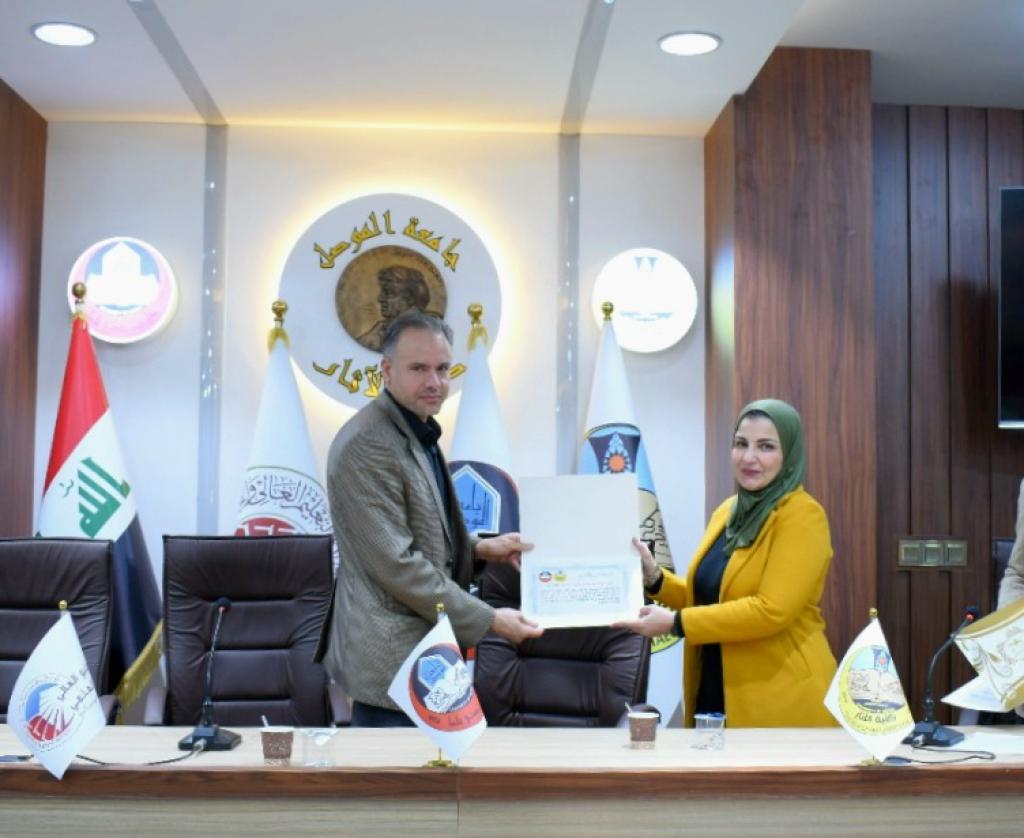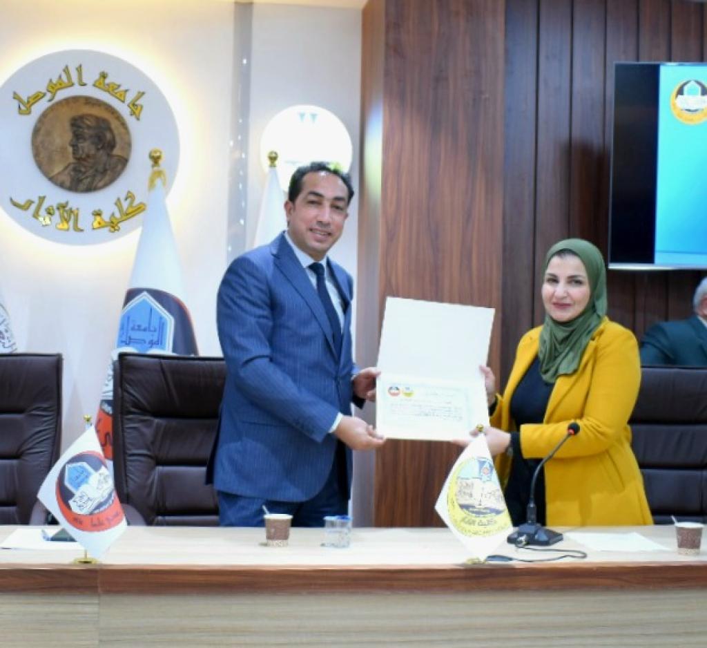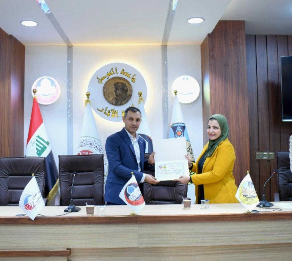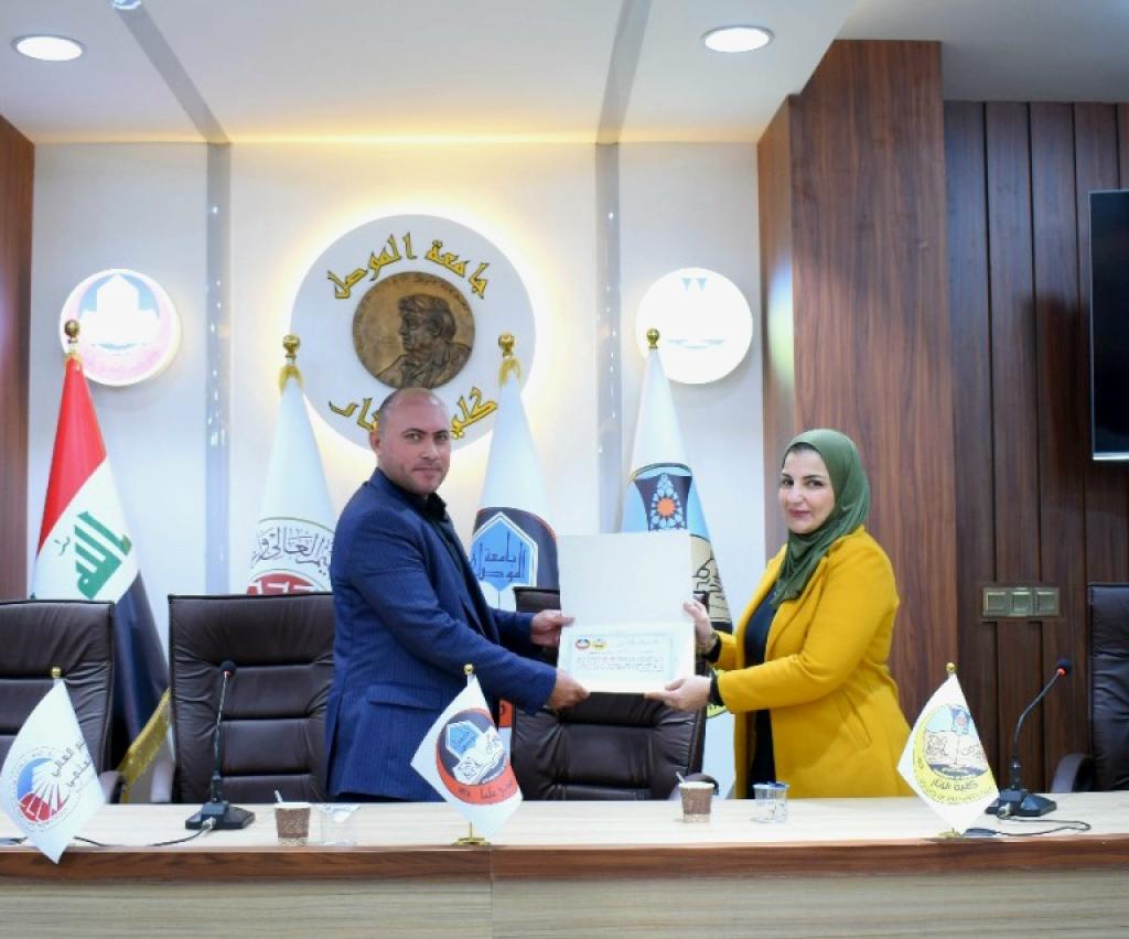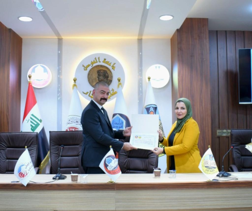 بمناسبة يوم اللغة العربية اقامت كلية الآثار ندوتها العلمية الموسومة(اللغة العربية جذور في عمق التاريخ)يوم الأحد الموافق 2022/12/18 الساعة التاسعة والنصف صباحاًعلى قاعة الدكتور بهنام أبو الصوفبحضور أ.م.د. ياسمين عبدالكريم محمد علي عميد الكلية وعدد من أساتذة وطلبة الاثارتكون الندوة من ثمان محاضراتالمحاضرة الأولــى بعنوانمدخل الى اللغة العربيةالأستاذ الدكتور المتمرس عماد عبد يحيىالمحاضرة الثانيــة بعنوانالأصول الثنائية للجذور الثلاثية في اللغة العربية والاكديةأ. د. سالم يحيى خلفالمحاضرة الثالثــة بعنوانأبواب الفعل الثلاثي الصحيح في اللغتين الاكدية والعربية، دراسة مقارنةأ. م. د. امين عبد النافع امينالمحاضرة الرابعة بعنوانالحروف النطعية والشجرية في اللغة الأكديةأ. م. د. خالد حيدر عثمانالمحاضرة الخامسة بعنوانتأصيل مفردات متشابهة بين اللغتين السومرية والعربيةأ. م. عثمان غانم محمدالمحاضرة السادسة بعنوانالشكل والاعجام، دراسة تقابليه بين الخطين المسماري والعربيأ. م. د. احمد ميسر فاضلالمحاضرة السابعة بعنواننائب الفاعل في اللغة الاكدية دراسة مقارنة مع اللغة العربيةم. د. عبد الستار احمد حسينالمحاضرة الثامنة بعنوانجسور التواصل بين اللغات العراقية القديمة واللغات العاربة المحكية (الفصيحة والعامية)م. م. محمد خضر عباسوخرجت الندوة بتوصيات مهمة