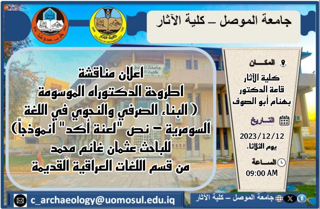 ورشة عمل تدريبية بعنوان ( تدوين واستنساخ الرقم الطينية) في كلية الآثار جامعة الموصل