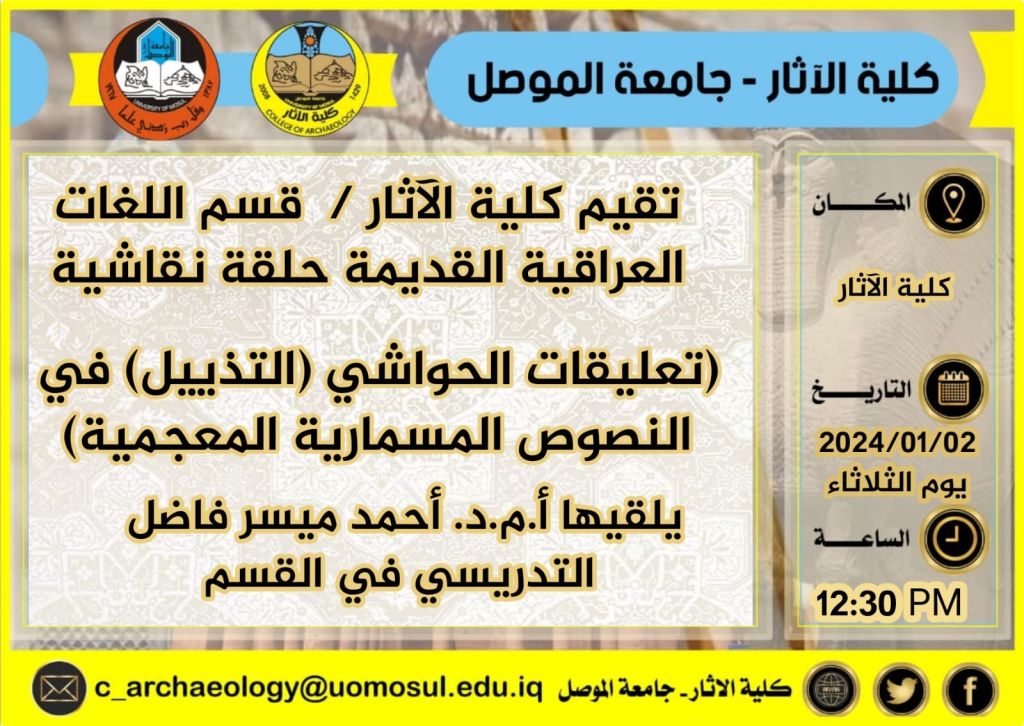 المؤتمر الدولي الرابع لكلية الآثار بعنوان ” نينوى مهد الحضارة وعطاء دائم”