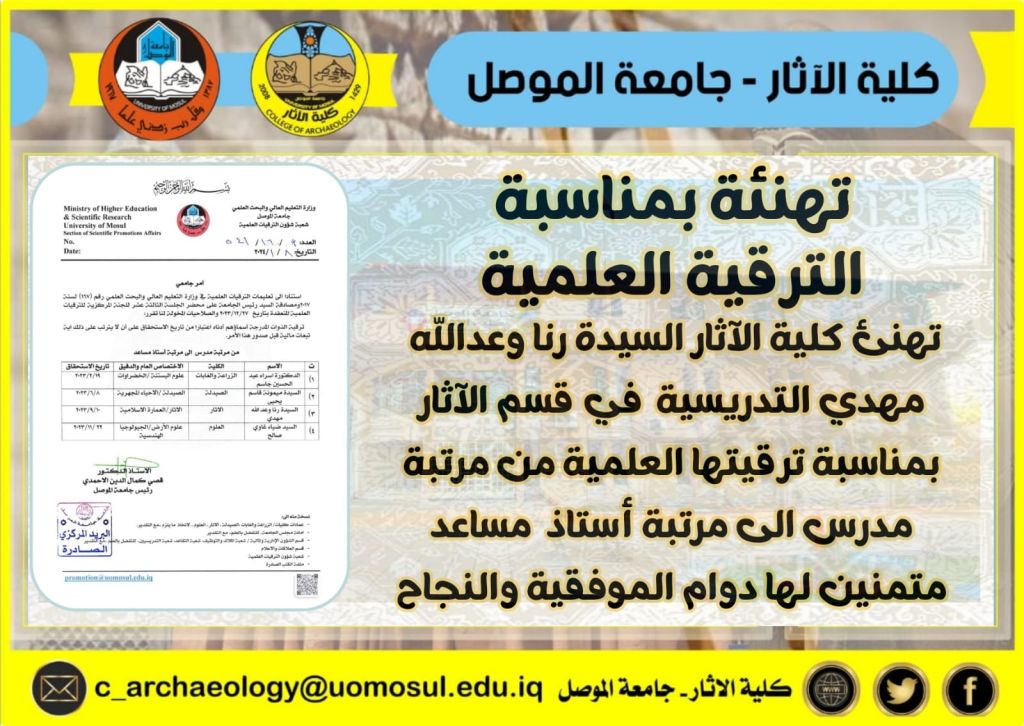 السيدة عميد كلية الاثار جامعة الموصل في ضيافة جامعة الكوفة في اجتماع لجنة عمداء كليات الاثار في الجامعات العراقية