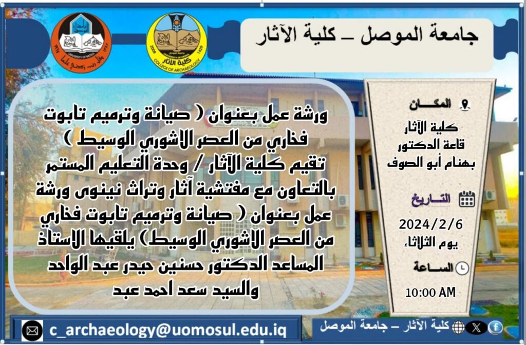ورشة عمل بعنوان ( صيانة وترميم تابوت فخاري من العصر الاشوري الوسيط )