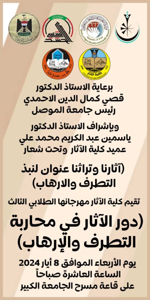 بحضور السيد رئيس جامعة الموصل المحترم الاستاذ الدكتور قصي كمال الدين الاحمدي ومساعديه العلمي والاداري وضمن محاور فعاليات مهرجان التنمية المستدامة الثاني في جامعة الموصل حصل طلبة كليتنا على مراكز متقدمة في مسابقة الفنون الإبداعية في دورتها الثلاثون، ففي مسار الحفر على الزجاج حصل الطالب طه أحمد عبدالغني على المركز الأول، وحصل الطالب صفوان مؤيد على المركز الثاني وفي نفس المسار حصلت الطالبة زينة بسام عبدالرحمن على المركز الثالث، وفي مسار التصميم الطباعي حصل الطالب عبدالرحمن قحطان يوسف على المركز الثاني.