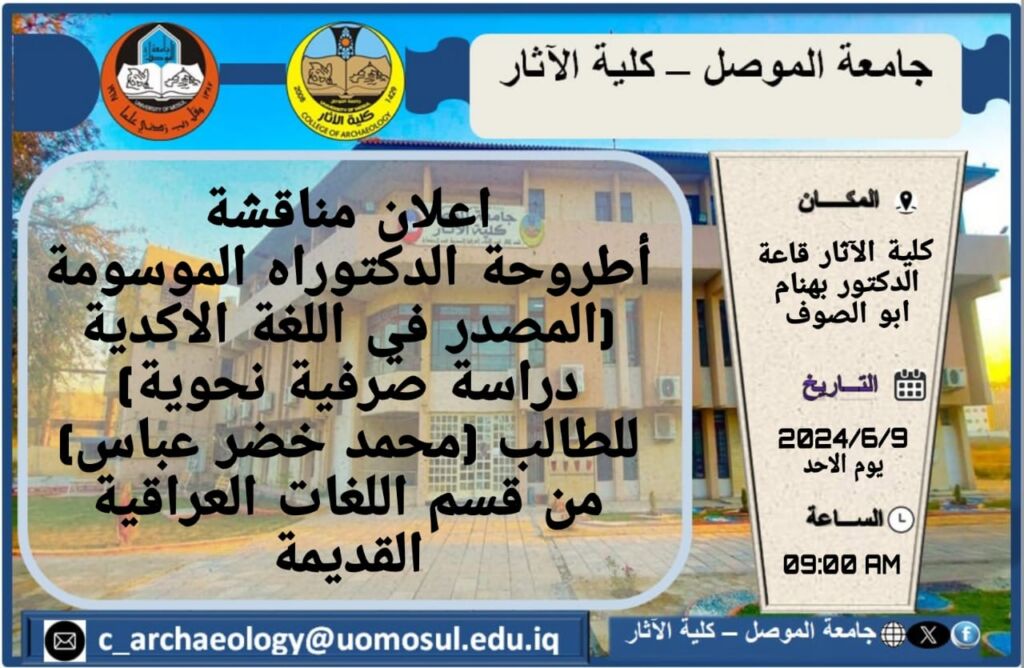 أقام قسم الآثار/ كلية الآثار/ جامعة الموصل حلقة نقاشية (سمينار) عن دار طوبيا منصور شلال في تلكيف- دراسة تطبيقية يوم الأربعاء الموافق 5/ حزيران/2024