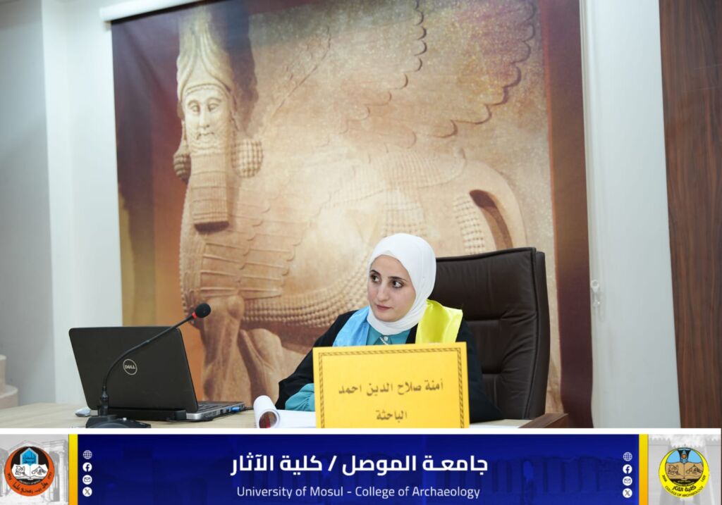 ترأس لجنة المناقشة الأستاذ الدكتور حسين ظاهر حمود والأستاذ مساعد الدكتور هيفاء أحمد عبد والدكتورة منى ماهود سالم الخبيرة في الآثار القديمة في وزارة الثقافة/ الهيئة العامة للآثار والتراث/ المتحف العراقي وعضوية وإشراف الأستاذ الدكتورة ياسمين عبدالكريم محمد علي عميد كلية الآثار/ جامعة الموصل.