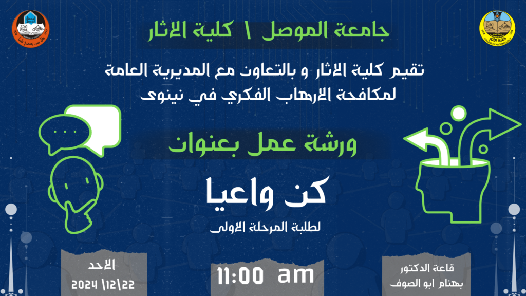وقد حضر جانباً من الورشة السيد معاون عميد كلية الآثار للشؤون العلمية والسادة رؤساء الأقسام وعدد من السادة التدريسيين والموظفين.