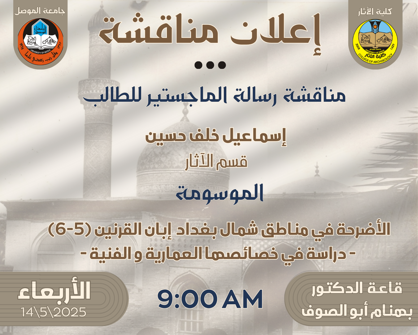 سيتم بعون الله تعالى مناقشة رسالة الماجستير الموسومة