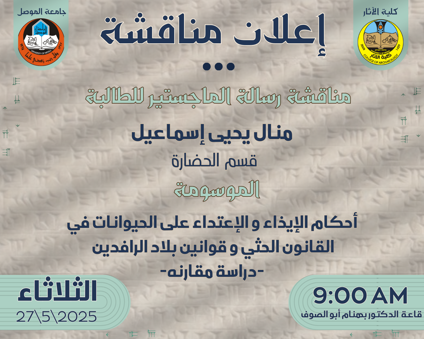 ( أحكام الايذاء والاعتداء على الحيوانات في القانون الحثي وقوانين بلاد الرافدين -دراسة مقارنة-)