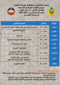 إعلان جدول امتحانات نهاية الفصل الدراسي الثاني (2024-2025)