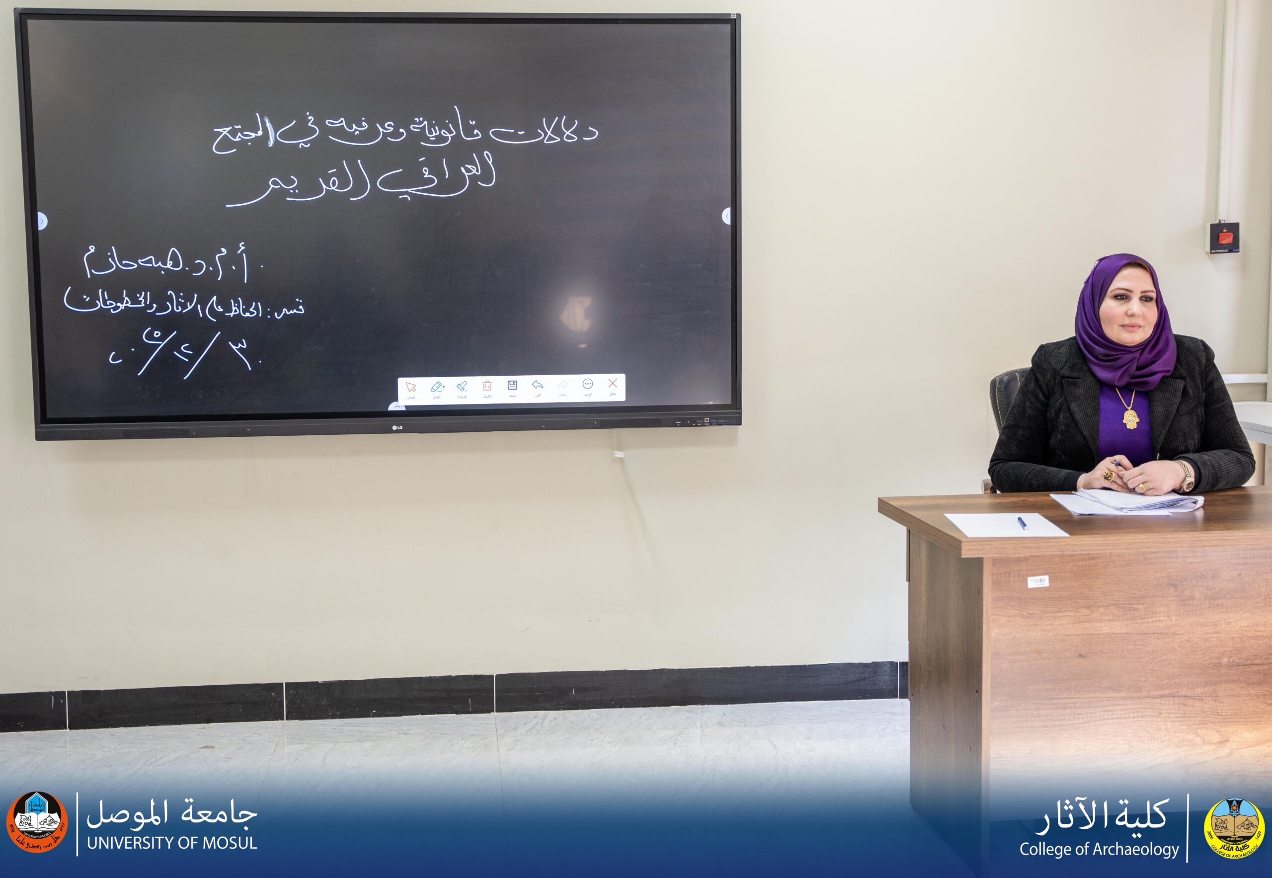 بدورها تتمنى عمادة كلية الاثار التوفيق للأستاذ المشرف والطالبة
