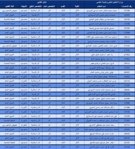 أعلان اسماء المتقدمين الى الدراسات العليا