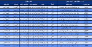 أعلان اسماء المتقدمين الى الدراسات العليا
