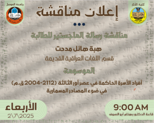 سيتم بعون الله تعالى مناقشة رسالة الماجستير الموسومة