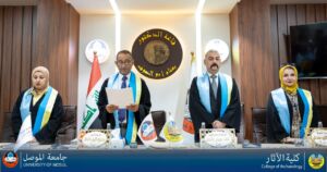 تمت مناقشة رسالة الماجستير الموسومة : (غير الاشوريين في منحوتات السلالة السرجونية) للطالب ( احمد خير الدين احمد) من قسم الآثار اليوم الاربعاء 23 تموز 2025 وعلى قاعة الدكتور بهنام أبو الصوف اذ تناولت الرسالة دراسة غير الآشوريين من الأجانب الذين ظهروا في المنحوتات الآشورية العائدة للسلالة السرجونية، وقد تم تحديد عينة الدراسة من المناطق الثلاثة المجاورة للمملكة الآشورية وهي (المنطقة الشمالية، والجنوبية والغربية).