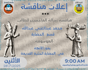 سيتم بعون الله تعالى مناقشة رسالة الماجستير الموسومة