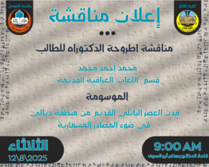 سيتم بعون الله تعالى مناقشة اطروحة الدكتوراه الموسومة