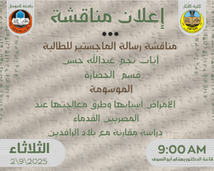 سيتم بعون الله تعالى مناقشة رسالة الماجستير الموسومة