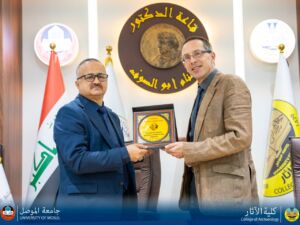 بإشراف ومتابعة السيدة عميد الكلية الأستاذ الدكتور ياسمين عبد الكريم محمد علي وفي اطار التعاون المشترك بين الجامعات العراقية والمتاحف الدولية ومد جسور التواصل العلمي أقامت كلية الاثار جامعة الموصل قسم اللغات العراقية القديمة اليوم الاثنين 20 تشرين الاول 2025 محاضرة علمية بعنوان (مكتبة الملك آشور بانيبال – ملك العالم) القاها البروفسور جونثان تايلور أمين قسم الالواح المسمارية والاختام الاسطوانية / قسم الشرق الاوسط / المتحف البريطاني، حضرها عدد من اساتذة الكلية وطلبة الدراسات العليا والاولية وتناول فيها الباحث اهمية النصوص المسمارية ودورها في معرفة تاريخ بلاد الرافدين كذلك تطرق الى ان عدداً من الالواح المسمارية قد تم تنزيلها على موقع المتحف البريطاني لتكون متاحا للباحثين والمهتمين بمجال الاثار وقراءة النصوص المسمارية، وفي ختام المحاضرة تم تكريم الباحث من قبل السيدة عميد كلية الاثار والسيد رئيس قسم اللغات العراقية القديمة، وتأتي هذه المحاضرة في تدعيم الهدف الرابع من أهداف التنمية المستدامة التعليم الجيد والهدف السابع عشر عقد الشراكات لتحقيق الأهداف.