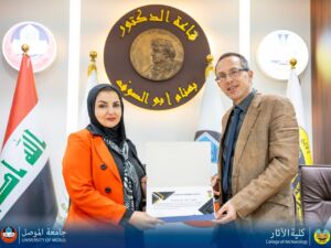 بإشراف ومتابعة السيدة عميد الكلية الأستاذ الدكتور ياسمين عبد الكريم محمد علي وفي اطار التعاون المشترك بين الجامعات العراقية والمتاحف الدولية ومد جسور التواصل العلمي أقامت كلية الاثار جامعة الموصل قسم اللغات العراقية القديمة اليوم الاثنين 20 تشرين الاول 2025 محاضرة علمية بعنوان (مكتبة الملك آشور بانيبال – ملك العالم) القاها البروفسور جونثان تايلور أمين قسم الالواح المسمارية والاختام الاسطوانية / قسم الشرق الاوسط / المتحف البريطاني، حضرها عدد من اساتذة الكلية وطلبة الدراسات العليا والاولية وتناول فيها الباحث اهمية النصوص المسمارية ودورها في معرفة تاريخ بلاد الرافدين كذلك تطرق الى ان عدداً من الالواح المسمارية قد تم تنزيلها على موقع المتحف البريطاني لتكون متاحا للباحثين والمهتمين بمجال الاثار وقراءة النصوص المسمارية، وفي ختام المحاضرة تم تكريم الباحث من قبل السيدة عميد كلية الاثار والسيد رئيس قسم اللغات العراقية القديمة، وتأتي هذه المحاضرة في تدعيم الهدف الرابع من أهداف التنمية المستدامة التعليم الجيد والهدف السابع عشر عقد الشراكات لتحقيق الأهداف.