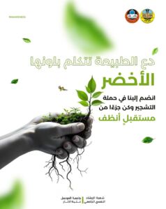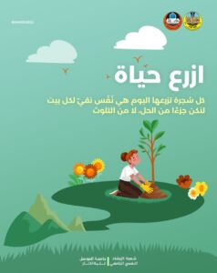 بدعم مباشر عميدة كلية الآثار الأستاذ الدكتور ياسمين عبد الكريم محمد علي وبجهود لشعبة الأرشاد النفسي الجامعي انطلاق حملة كبرى لتوزيع البوسترات على الطلبة بهدف زيادة الرقعة الخضراء وتحسين البيئة الجامعية .