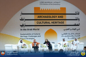 ضمن المشاركات الدولية وبناء جسور التواصل العلمي بين الجامعات والمعاهد الدولية شاركت الاستاذ الدكتور ياسمين عبدالكريم محمد علي عميد كلية الاثار في أعمال مؤتمر الاثار والتراث الحضاري في الوطن العربي بدورته السابعة والعشرون والمنعقد في دولة قطر، وكان حضور العراق مميز اذ تضمن الوفد العراقي الاستاذ علي شلغم رئيس الهيأة العامة للاثار والتراث والدكتورة لمى الدوري مدير عام دائرة المتاحف العامة والاستاذ الدكتور ياسمين عبدالكريم محمد علي عميدة كلية الاثار وعدد كبير من دول الوطن العربي في المؤتمر وتم افتتاح المؤتمر من قبل معالي وزيرة التربية والتعليم القطرية يوم الثلاثاء 28 تشرين الأول 2025 وشاركت الأستاذ الدكتور ياسمين عبدالكريم محمد علي ببحثها الموسوم (دور البحث العلمي في استراتيجيات استدامة التراث)، وتأتي هذه المشاركة ضمن اهداف التنمية المستدامة الهدف الرابع التعليم الجيد والهدف الحادي عشر مدن ومجتمعات محلية مستدامة والهدف السابع عشر عقد الشراكات وتحقيق الأهداف.