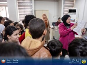 استقبلت كلية الآثار زيارة علمية لطلبة ابتدائية الجيل المميز المختلطة مع عدد من كادر المدرسة اليوم الاربعاء 26 تشرين الثاني 2025 وكان في استقبالهم الدكتور ياسر جابر معاون العميد للشؤون العلمية وعدد من التدريسين في الكلية وتأتي الزيارة العلمية من اجل تحقيق التواصل المعرفي والثقافي بين المؤسسات التربوية في وزارتي التربية والتعليم العالي بهدف تعرف الطلبة على أهمية الاثار وقيمتها وكيفية الحفاظ عليها والتعرف على كيفية التدوين بالكتابة المسمارية.