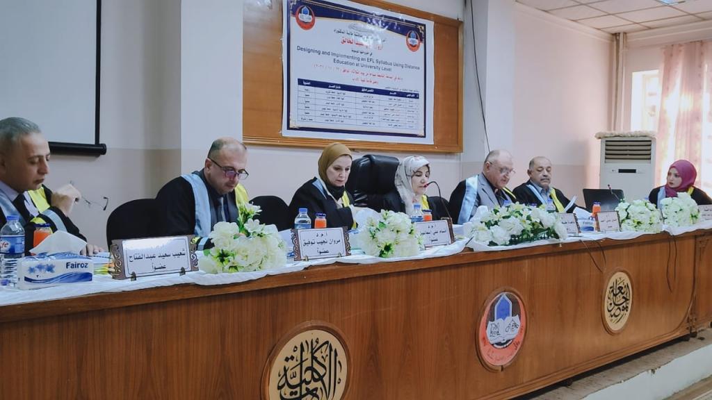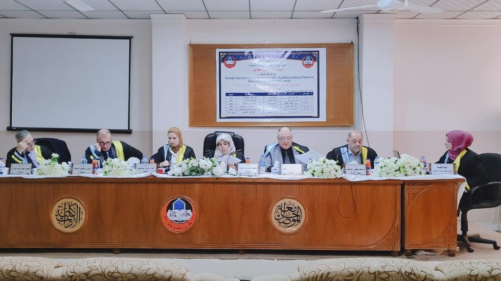 ناقش قسم اللغة الإنكليزية في كلية الآداب اطروحة دكتوراه بعنوان ” تصميم وتنفيذ منهج اللغة الإنجليزية كلغة أجنبية باستخدام التعليم عن بعد على مستوى الجامعة،” ” DESIGNING AND IMPLEMENTING AN EFL SYLLABUS USING DISTANCE EDUCATION AT UNIVERSITY LEVEL،” يوم (الثلاثاء) الموافق 23 تشرين الثاني 2021 على قاعة كلية الآداب، حضر جانبا منها السيد عميد كلية الآداب الاستاذ المساعد الدكتور محمد علي محمد عفين مع نخبة من منتسبي و تدريسيي الكلية.