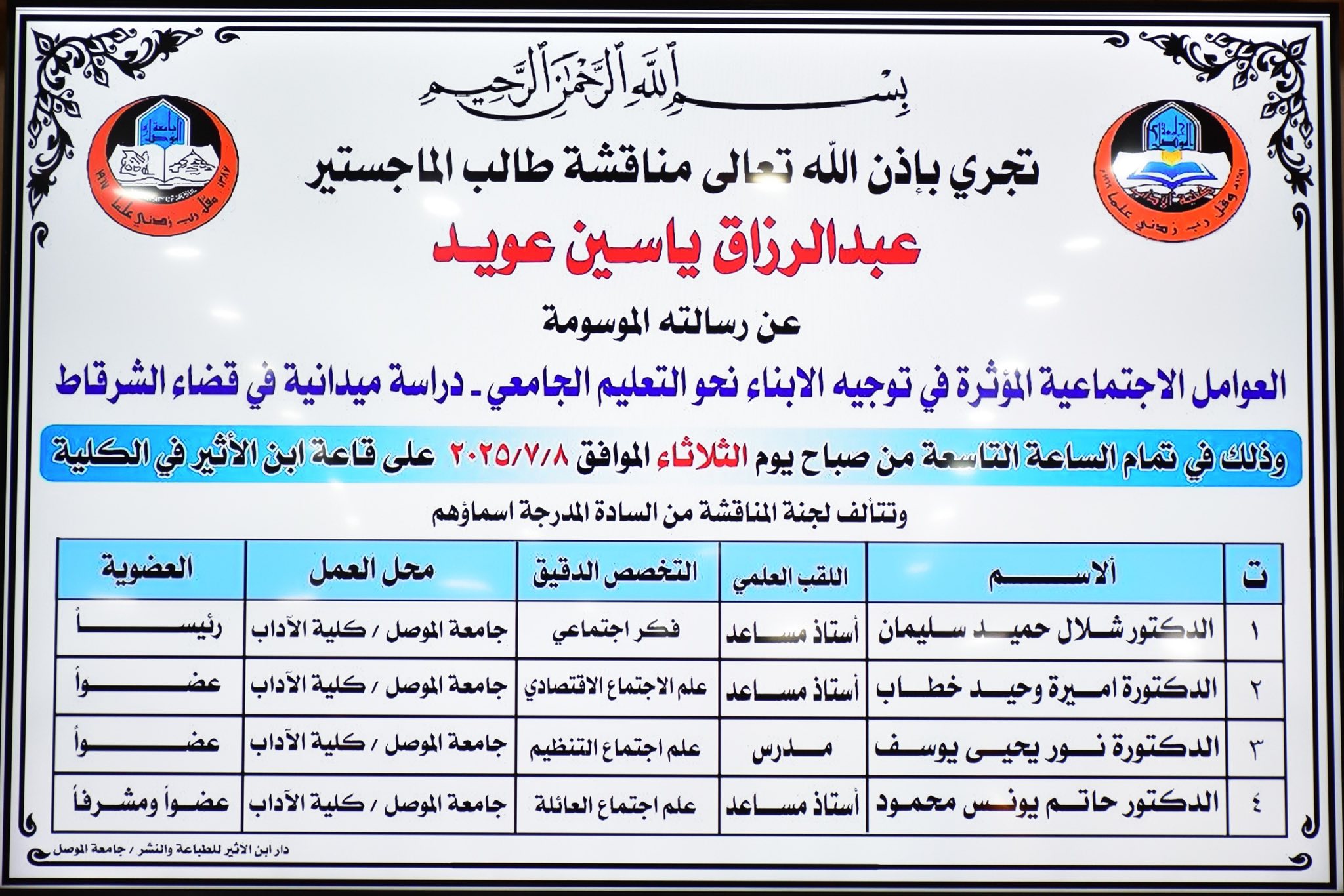 نتائج الامتحان التنافسي للمتقدمين للدراسات العليا ٢٠٢٤ - ٢٠٢٥ .. كلية الآداب - جامعة الموصل