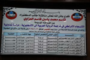 أطروحة دكتوراه عن “الانسجام الادراكي في ترجمة الرواية العربية الى الانجليزية: دراسة تداولية”