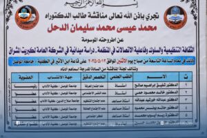أطروحة دكتوراه عن “الثقافة التنظيمية والسلوك وفاعلية الاتصالات في المنظمة دراسة ميدانية في الشركة العامة لكبريت المشراق”