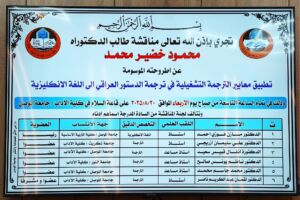 أطروحة دكتوراه عن “تطبيق معايير الترجمة التشغيلية في ترجمة الدستور العراقي إلى اللغة الانجليزية”