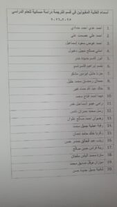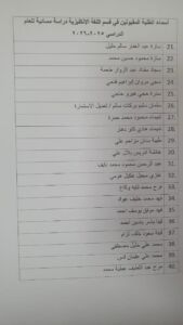 إعــــلان عن أسماء الطلبة المقبولين في الدراسة المسائية للعام الدراسي ٢٠٢٥–٢٠٢٦.