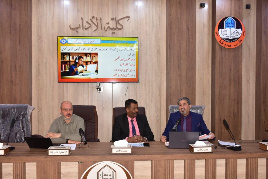 برعاية السيد رئيس جامعة الموصل الأستاذ الدكتور قصي كمال الدين الاحمدي المحترم وباشراف السيد عميد كلية الآداب الأستاذ الدكتور محمد علي محمد عفين المحترم