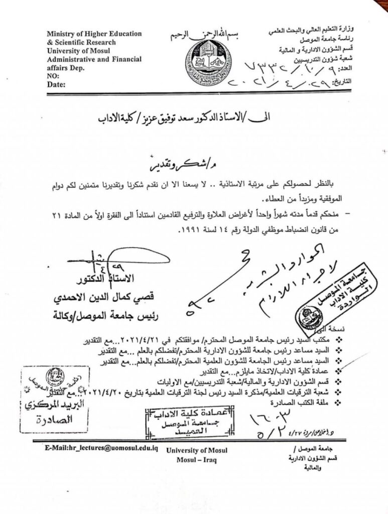 عقد السيد عميد كلية الآداب الدكتور محمد علي محمد عفين اجتماعات منفصلة مع لجنة الدراسات العليا ورؤساء الاقسام واللجان العلمية في اقسام كلية الاداب كافة من اجل بحث عدة امور تخص اللجان العلمية وتسجيل عناوين الرسائل والاطاريح والبحوث العلمية والتركيز على الرصانة العلمية فضلا عن تنظيم المناقشات وترتيب مواعيدها والاعداد للورش والندوات والحلقات النقاشية بما يتناسب مع مكانة الكلية العريقة