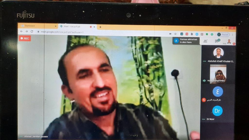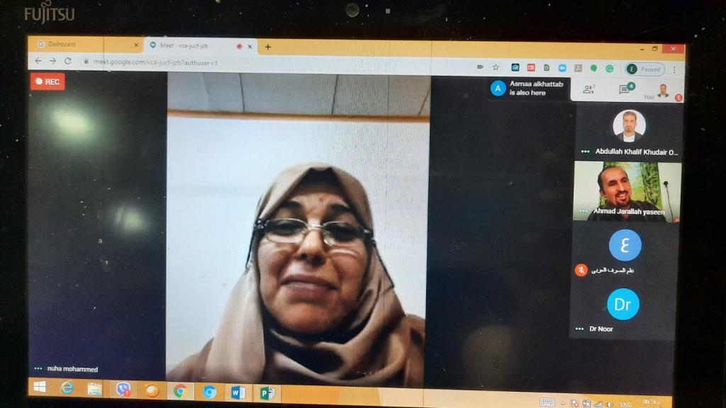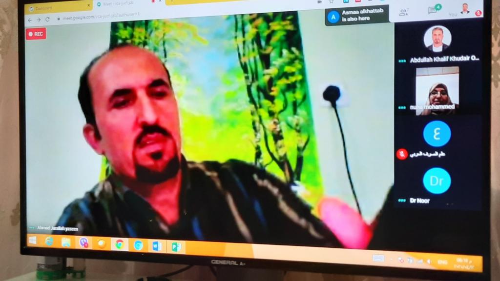 عقدت اللجنة العلمية في قسم اللغة العربية في كلية الآداب اجتماعها الكترونيا يوم الأحد الموافق 12/ 4/ 2020 في الساعة السادسة مساء عن طريق برنامج Google meet ، واستغرق الاجتماع ساعتين ، وحضر الاجتماع كلّ من :1- أ. د. احمد جارالله ياسين / رئيس اللجنة2- ا. د. نوار عبدالنافع الدباغ3- أ.م. د. اسماء سعود ادهام4- ا. م. د. نهى محمد عمر5- ا. م .د هلال علي محمود6- ا. م. د. عبدالله خليف خضروناقشت اللجنة العلمية جملة كبيرة من المسائل وخرجت بالقرارات الاتية :أولا – الموافقة على عناوين تسجيل البحوث المستلة الاتية :1- التواصل اللغوي – دراسة في الافتراض المسبق في نقائض بدر بن عامر وابي العيال .( بحث مستل ) ، نور وليد عبد ، أ . م . د. أحمد ابراهيم خضر2- التواصل السياقي / دراسة الصيغ الصرفية في نقائض صخر وأبي المثلم ، نور وليد عبد ، أ . م . د. أحمد ابراهيم خضر ( بحث مستل )3- الرمز والترميز في أدب الطفل / الظل والحرور لعبدالله عيسى السلامة أنموذجا .، أيمن خالد صالح ، أ . م . د. أحمد عدنان حمدي ( بحث مستل )4- حديث الثلاثة من بني اسرائي ( أبرص / أقرع / أعمى ) قراءة بلاغية ، علي ذنون يونس ، أ. م. د أسماء سعود خطاب ( بحث مستل )5- من كتاب ابن خالويه ( ت 370 هـ ) إلى كتاب البصروي ( ت 889 هـ ) في إعراب الثلاثين .دراسة موازنة .(بحث مستل) ا. م. د. نوفل علي مجيد ، أ . د. عبدالوهاب محمد علي العدواني6- الدلالة الاحتمالية في آيات الجزاء ( جزاء الكافرين أنموذجا ) ( بحث مستل ) اليمامة حازم هايس ، أ. م. د. نوار محمد اسماعيل7- أثر الاستبدال في الاتساق في الاتساق النصي . (بحث مستل) أ.د. عماد عبد يحيى ، أ. م. د. عبدالله خليف خضر8- آليات التماسك النصي في القرآن الكريم / علم المناسبة سورة النمل (أنموذجا ) .بحث مستل) ، أ.د. عماد عبد يحيى ،أ. م. د. عبدالله خليف خضرثانيا – الموافقة على تسجيل عنواني الكتابين المقدمين بوصفهما نشاطا علميا وهما : 1ـ ( أبو عبدالله الحميدي وكتاب جذوة المقتبس) للأستاذ الدكتور حازم عبدالله خضر – رحمه الله – تقديم ومراجعة : أ. د. يونس طركي سلوم2ـ الصوت وظلاله الخضر ( قراءة نقدية في شعر ستار عبدالله ) أ . م. د. إخلاص محمود عبدالله .ثالثا – الموافقة على تسجيل عنواني الورقتين النقديتين :أـ ( البلاغة العربية والاسلوبية ) أ. م. د. عبدالله خليف خضرب. (الفكر الاسلوبي عند عبد القاهر الجرجاني نظرية التلقي انموذجا) .ا. م. د. اسماء سعود ادهامرابعا – وافقت اللجنة على تسجيل البحوث الآتية :1- مرجعيات الشخصيات في رواية الشمعة والدهاليز للطاهر وطار .، د. سروة يونس أحمد2- دلالة الاسم الشخصي في مجموعة ( خريف لايؤمن بالاصفرار للشاعر جاسم محمد جاسم) . ، د. اخلاص محمود عبدالله .3- ملامح الحزن في شعر الشريف المرتضى ( 355 هـ ). ا. م. د. حمد محمد فتحي4- الفاعلية الجمالية في شعر ربيعة الرقي ( 189 ه ) ا. م. د. حمد محمد فتحي5- الفنون البديعية في كتاب رياض الصالحين للنووي ( ت 676 ه ) نماذج مختارة ، أ.م. د. آلاء أحمد حسن6- الموازيات النصية لمقالات محمود درويش ( يوميات الحزن العادي ) ، د. جنان عبدالله يونس7- الحجاج في قصيدة ( أزجرت الفؤاد منك الطروبا لعبدالله بن قيس الرقيات) ، د. خالد فارس خليل .8- سيميائية الخلاص في قصيدة هناك رحلات للشاعر سركون بولس . ، د. ريم محمد طيب ، أ . م. د. محمود خليف خضر9ـ دلالة جمعي المذكر السالم والمؤنث السالم في جزء عم / دراسة تحليلية. د. زهراء خالد سعدالله / سهام لطيف رشيد / رؤى مهنا يحيى .