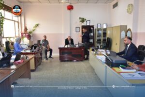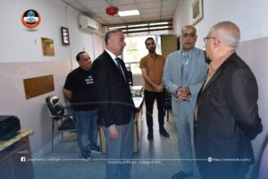 كما أجرى السيد عميد الكلية برفقة السيدان المعاون العلمي والمعاون الإداري، جولة تفقدية ميدانية للشعب والوحدات الإدارية والعلمية في الكلية بهدف الاطلاع على سير العمل والوقوف على احتياجات الموظفين ومتطلباتهم، من أجل توفير البيئة العملية المناسبة لتعزيز كفاءة الأداء وتحقيق الأهداف الأكاديمية والإدارية.
