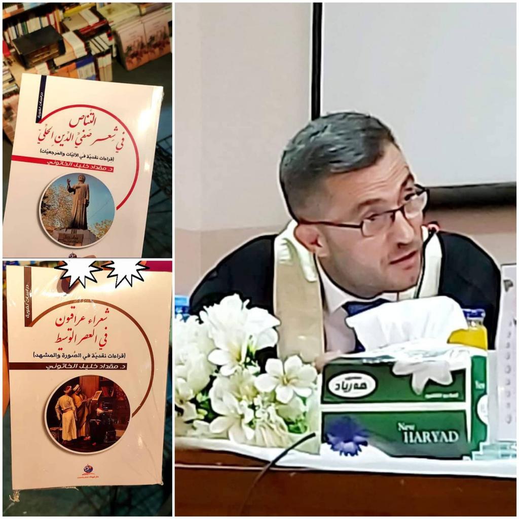 من الاصدارات العلمية لتدريسيي كلية الآداب، صدور كتابين نقديين عن (دار غيداء للطباعة والنشر في الأردن) للأستاذ الدكتور (مقداد خليل قاسم الخاتوني) التدريسي في قسم اللغة العربية، الاول بعنوان “التناص في شعر صفي الدين الحلي (قراءات نقدية في الآليات والمرجعيات)” و الثاني بعنوان “شعراء عراقيون في العصر الوسيط (قراءات نقدية في الصورة والمشهد)”.يهدف الكتاب الاول الى توضيح أهمية الكتاب من قيمة الشاعر وتوكيدها بمحاولة نقدية تطبيقية تستشف التداخلات التناصية عند الشاعر برصدها وتحصيل فاعليتها بالمسار التحليلي بينما يؤكد الكتاب الثاني بنظراته النقدية على تصدر الشعراء العراقيين المشهد الثقافي الأدبي في العصر الوسيط بدراسته لظواهر منتخبة في التشكيل والموضوع.