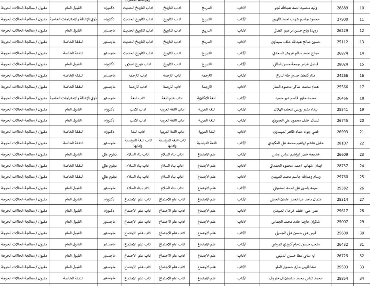 اعلان من شعبة الدراسات العليا عن اسماء المرشحين المشمولين بمعالجة الحالات الحرجة والتدوير