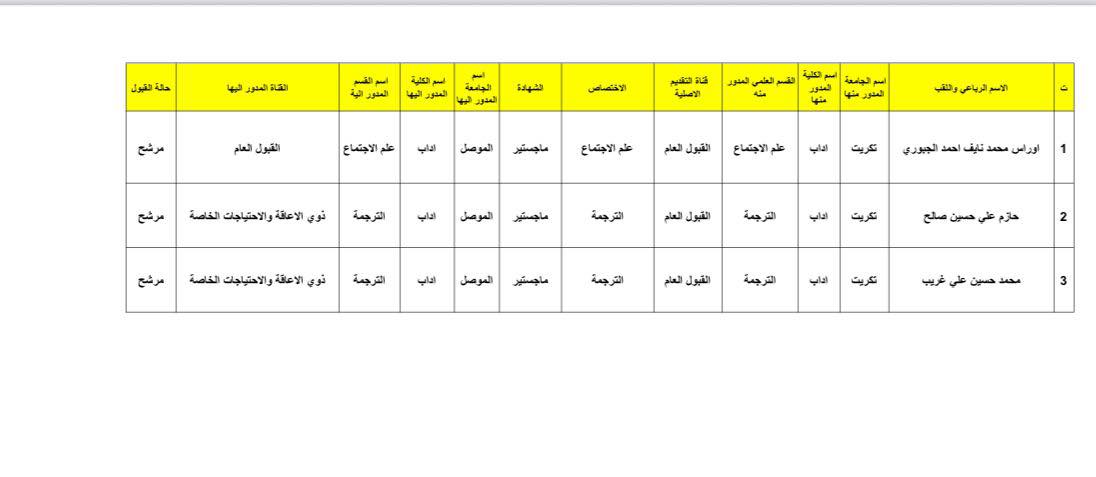 تعلن شعبة الدراسات العليا / كلية الاداب عن اسماء المرشحين المشمولين بالتدوير بين الجامعات ( التدوير الاول ) للعام الدراسي 2025 / 2026 والمرفقة اسمائهم في ادناه :