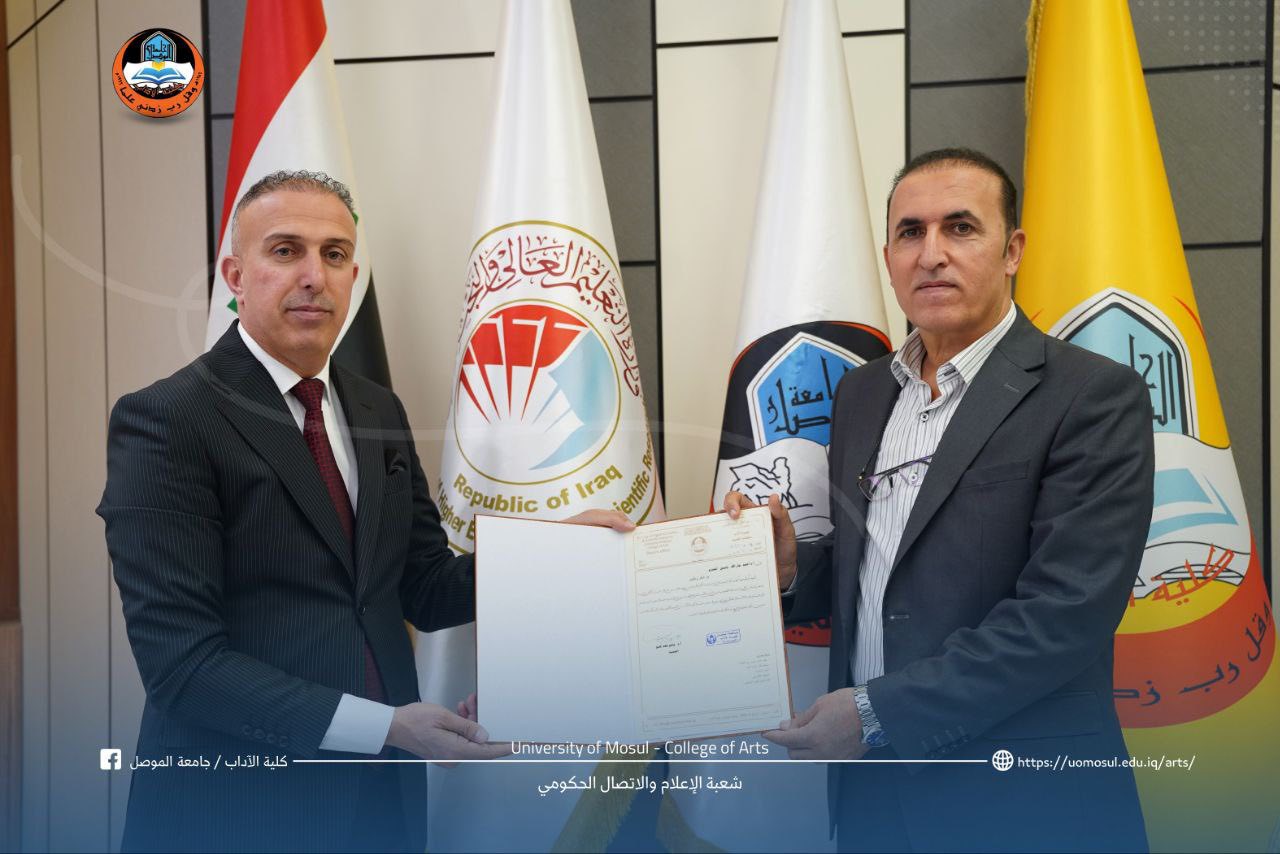نال الأستاذ الدكتور أحمد جارالله، التدريسي في قسم اللغة العربية بكلية الآداب، كتاب شكر وتقدير من رئيس جامعة الموصل الأستاذ الدكتور وحيد محمود الإبراهيمي، تقديراً [إقرأ المزيد]