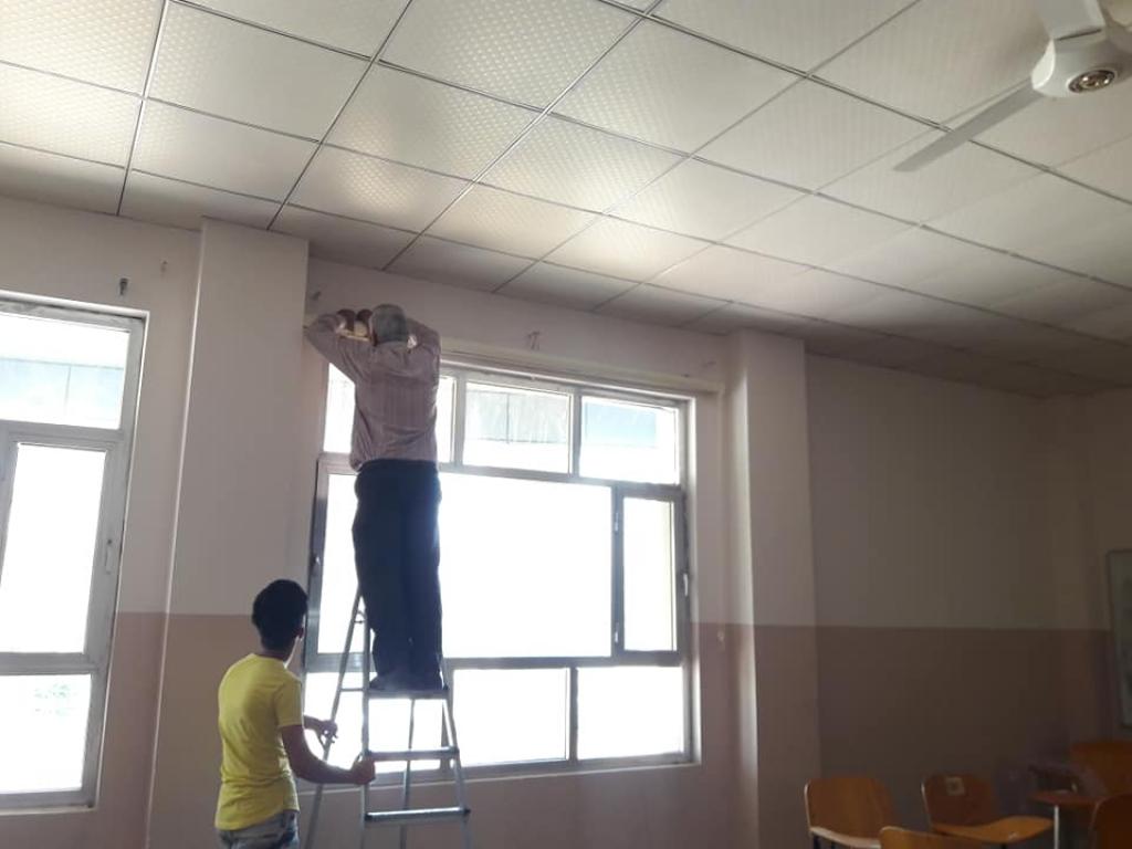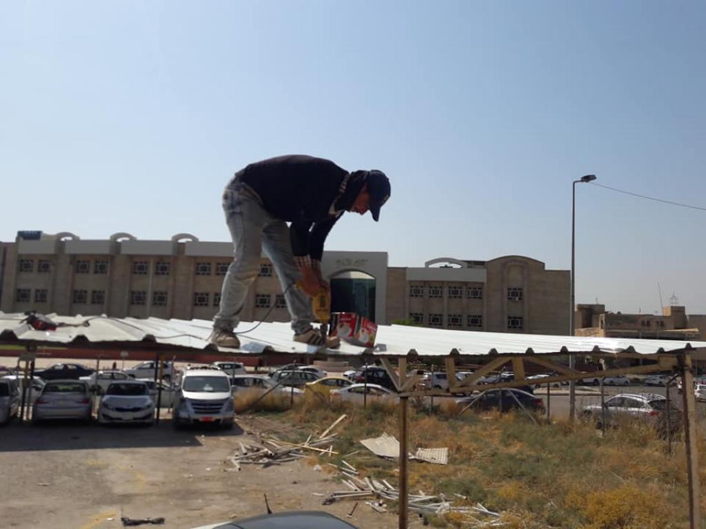 بإشراف وتوجيه عمادة كلية الآداب واستكمالا لأعمال الصيانة التي تقوم بها كلية الآداب استعدادا لبدء العام الدراسي الجديد تم اليوم نصب الستائر داخل القاعات القاعات الدراسية في أقسام الكلية، كما تم عمل وتجديد سقائف ساحة وقوف السيارات الخاصة بأساتذة ومنتسبي الكلية.