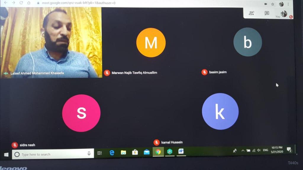 الامتحان الشامل برئاسة أ.د.وفاء عبداللطيف رئيسة اللجنة العلمية وحضور أ.د.مروان نجيب رئيس القسم ولجنة الامتحان الشامل المؤلفة من أ.د.باسم يحيى وأ.د.نشوان الساعاتي وأ.د.كمال حازم، جرى ليلة امس الامتحان الشامل الشفهي لطالب الدكتوراه لطيف احمد وعلى تطبيق كوكل مييت ، حيت استعرض الموضوع الذي ينوي معالجته في أطروحة الدكتوراه وقد استغرقت المناقشة ساعتين وجرت المصادقة على العنوان وتحديد أ.د.كمال حازم مشرفا على الاطروحة.