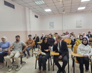 وكان في استقباله رئيس قسم اللغة الفرنسية الأستاذ المساعد أحمد أمين توفيق وعدد من تدريسيي القسم، حيث جرى لقاء تعريفي جمع القنصل بكادر القسم وطلبة الدراسات العليا والأولية.