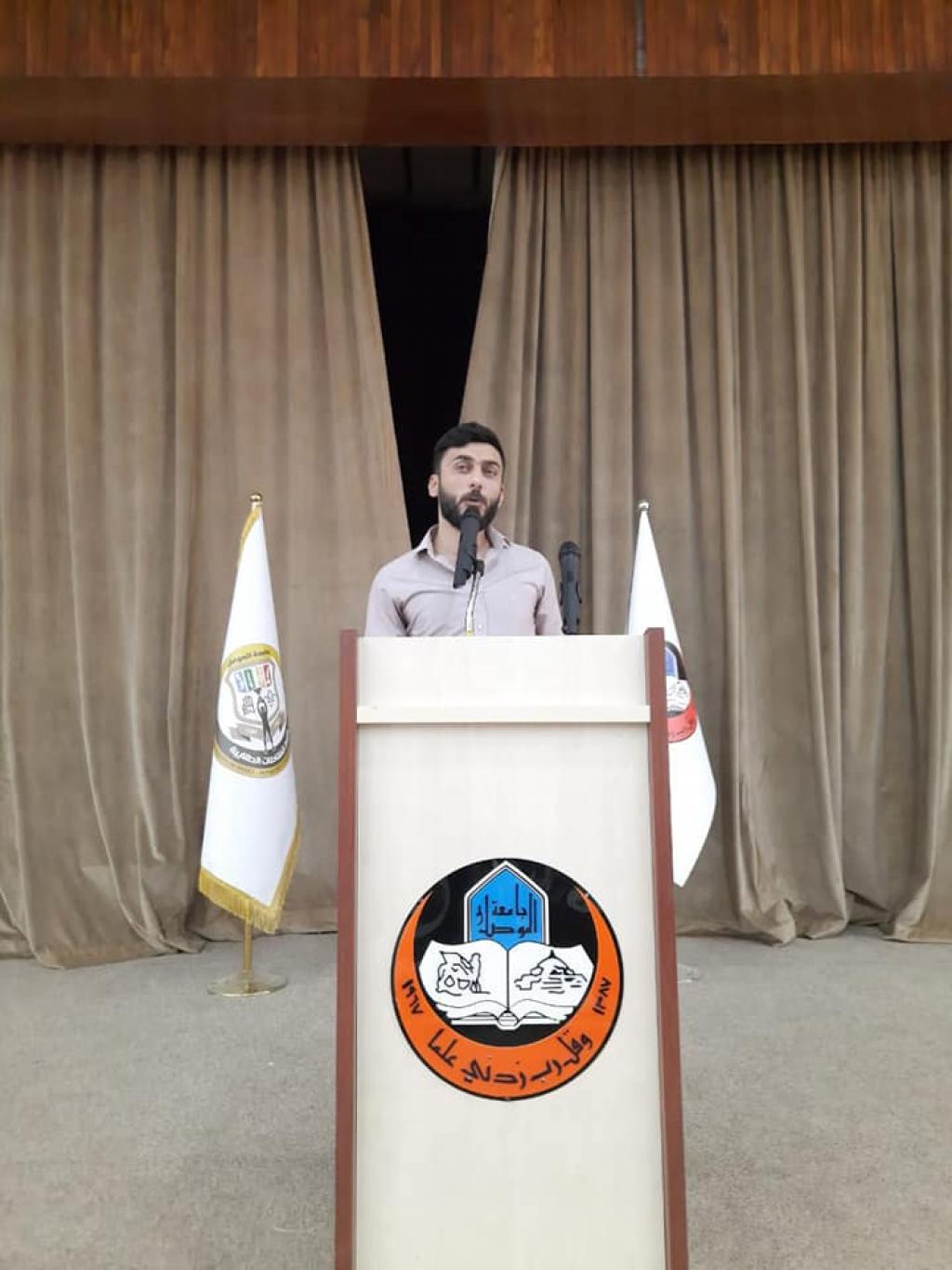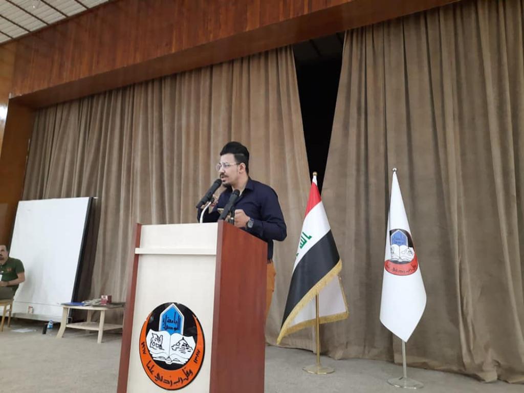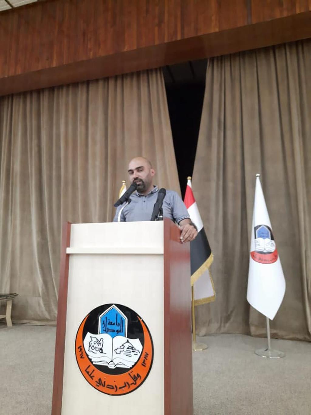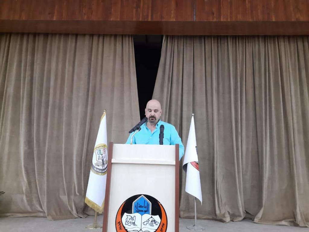 برعاية السيد رئيس جامعة الموصل الأستاذ الدكتور قصي كمال الدين الاحمدي المحترموبإشراف كل من :أ.د. ضمياء علي عبد الله الزيدي ـ عميد كلية التربية للبناتوأ.م.د. محمد علي محمد عفين ـ عميد كلية الآداباقام قسم اللغة العربية ـ كلية الآداب بالتعاون مع كلية التربية للبنات ممثلة بقسم اللغة العربية وشعبة النشاطات الطلابية وبمشاركة وحضور اتحاد الادباء والكتاب في نينوى مهرجانه الثقافي الشعري الرابع المدمج بعنوان : (لغتنا هويتنا)اذ انطلقت الجلسات الحضورية اليوم الاربعاء الموافق 7/7/2021 الساعة العاشرة صباحا في مسرح المركز الطلابي وسبقتها الجلسات الالكترونية يوم الاثنين الموافق 5/7/2021 على برنامج( google meet) الساعة الثامنة مساء بتوقيت العراقاهداف المهرجان واهميته :يأتي هذا المهرجان الثقافي الشعري ضمن نشاطات قسم اللغة العربية السنوية ويهدف الى التلاقح الثقافي والمعرفي وبناء منظومة معرفية واعية عبر اداء تطبيقي يعتمد الابداع والاداء الفصيح ولا سيما فيما يتعلق بتقديم النصوص على المنصات الشعرية ويشهد هذا المهرجان مشاركة محلية واسعة وكذلك مشاركة كبيرة من الشعراء العرب من فلسطين ولبنان ومصر والجزائر والمغرب وكذلك شهد حضورا دولية من الهند ، ليعبر هذا اللقاء عن ذلك التقارب المعرفي والثقافيتكمن اهميته في كونه اضخم تجمع ثقافي شعري لشعراء عراقيين وعربادار التقديم والاعدادا.د. احمد جار الله ياسينا.م.د. عبدالله خليف الحيانيوشارك فيه نخبة من المبدعين من جامعة الموصل وخارجها وهم كل منأ.د. احمد جارالله ياسين ـ كلية الآدابا.د. سالم محمد ذنون ـ كلية التربية للعلوم الانسانيةعبد المنعم الامير ـ رئيس اتحاد الادباء العراقيين فرع نينوىد. عيسى فاضل النزال ـ كلية الآدابعمر حماد هلالمحمد جلال الصائغمحمود المشهدانيسعد محمدفهد اسعدعلي خالد العيثانالشاعر والأديب احمد علي سالمالشاعر والأديب خميس خضر طميشمناضل عناد ـ كلية التربية للعلوم الانسانيةاماني عبد الرزاق ـ كلية التربية للبناتعائشة عبد الستار عبد الله البدراني ـ كلية الفنون الجميلةغفران جرجيس خلف الحمداني ـ كلية التربية للبناتاية مازن الصوفي ـ كلية التربية للبناتحسين محمود ـ قسم علوم الحياة ـ كلية التربية الاساسية