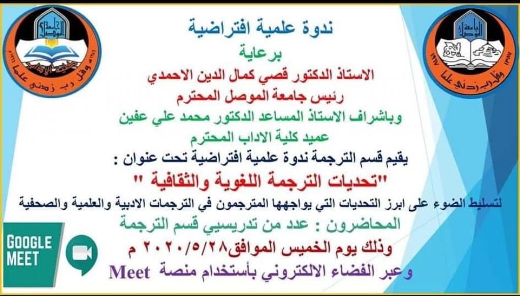الندوة العلمية الالكترونية لقسم الترجمة (تحديات الترجمة اللغوية والثقافية)