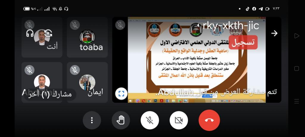 انطلاق اعمال الملتقى الدولي العلمي الافتراضي الاول (ماهية العقل وجدلية الواقع والحقيقة) بالتعاون مع جامعة زيان عاشور بالجلفة ـ الجزائر